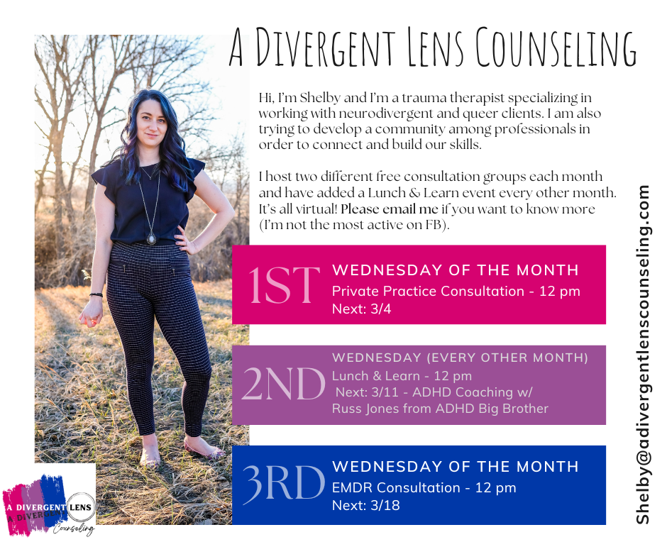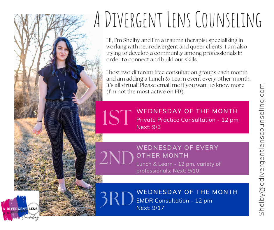 A Divergent Lens Counseling is hosting three groups for professional learning, skill development, and connection!